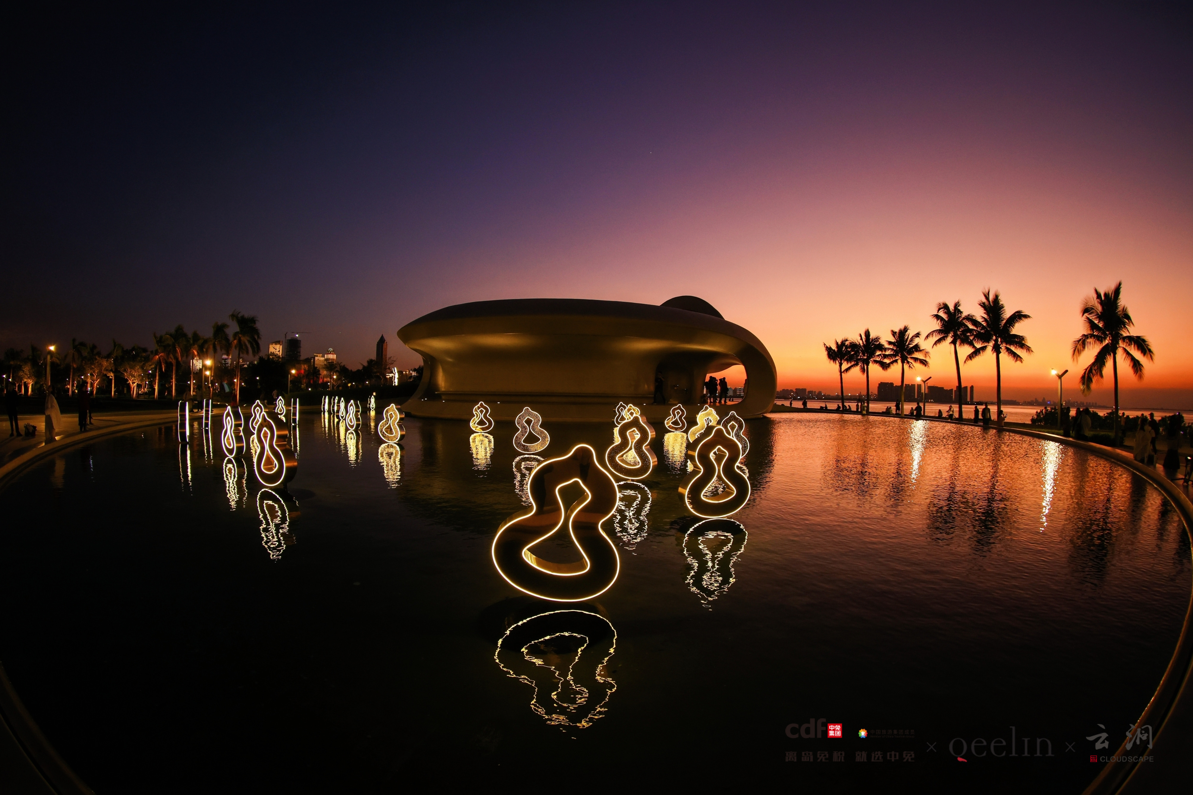 高級珠寶品牌Qeelin,擅長將中華傳統(tǒng)文化圖騰與現(xiàn)代美學(xué)相結(jié)合,配以精湛的珠寶工藝,打造出充滿趣味的獨特設(shè)計。而此次活動落地在??谑械貥?biāo)建筑——海口云洞圖書館,連接藝術(shù)與創(chuàng)新之巧思,迎面一串Wulu疊落造型的歷史墻,展現(xiàn)Qeelin將中華傳統(tǒng)藝術(shù)文化的瑰麗匠心不斷傳承。館外于湖面之上,一抹Qeelin Wulu鋪陳展開而來,葫蘆風(fēng)車、玲瓏燈盒各呈姿態(tài)??蓯郯咨獴o Bo守候在不同的空間,恭候大家的到來。獨特的裝置藝術(shù),不僅引燃了高曝光的話題度,更是吸引到眾多對中國文化與藝術(shù)感興趣群體的目光。